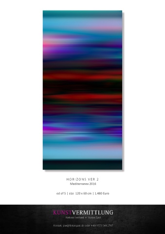 HORIZ ONS VER 2 Mediterranea 2016 ed of 5 | size 120 x 60 cm | 1.480 Euro KUNSTVERMITTLUNG Barbara Lenhard + Florian Gast Kontakt: jcw@floriangast.de oder +49 1573 544 2707