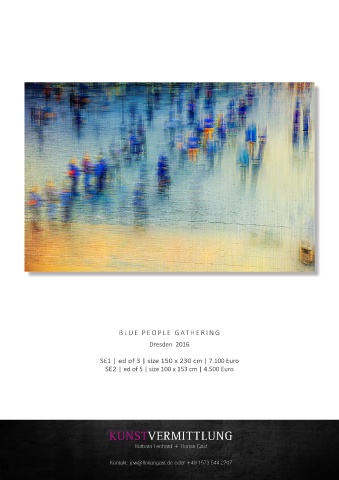 BLUE PE OPLE GATHERING Dresden 2016 SE1 | ed of 3 | size 150 x 230 cm | 7.100 Euro SE2 | ed of 5 | size 100 x 153 cm | 4.500 Euro KUNSTVERMITTLUNG Barbara Lenhard + Florian Gast Kontakt: jcw@floriangast.de oder +49 1573 544 2707