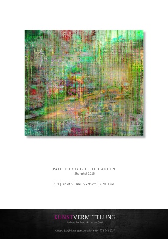 PATH THR OUGH THE GARDEN Shanghai 2015 SE 1 | ed of 5 | size 85 x 95 cm | 2.700 Euro KUNSTVERMITTLUNG Barbara Lenhard + Florian Gast Kontakt: jcw@floriangast.de oder +49 1573 544 2707